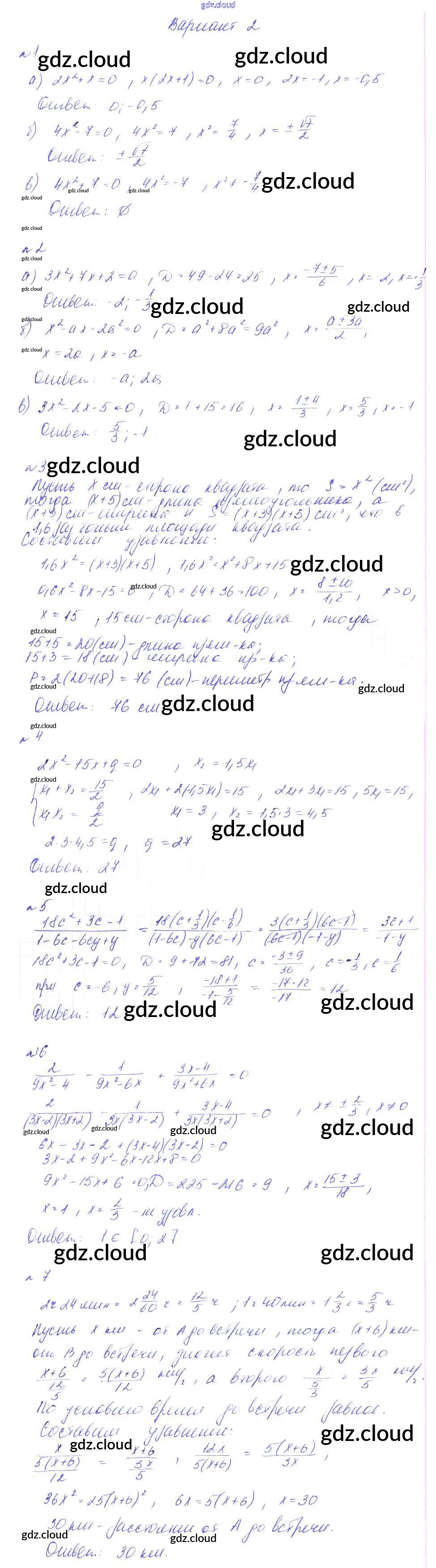 Ответ на задание вариант 2 Дидактические материалы Алгебра за 8 (восьмой) класс Феоктистов 2013