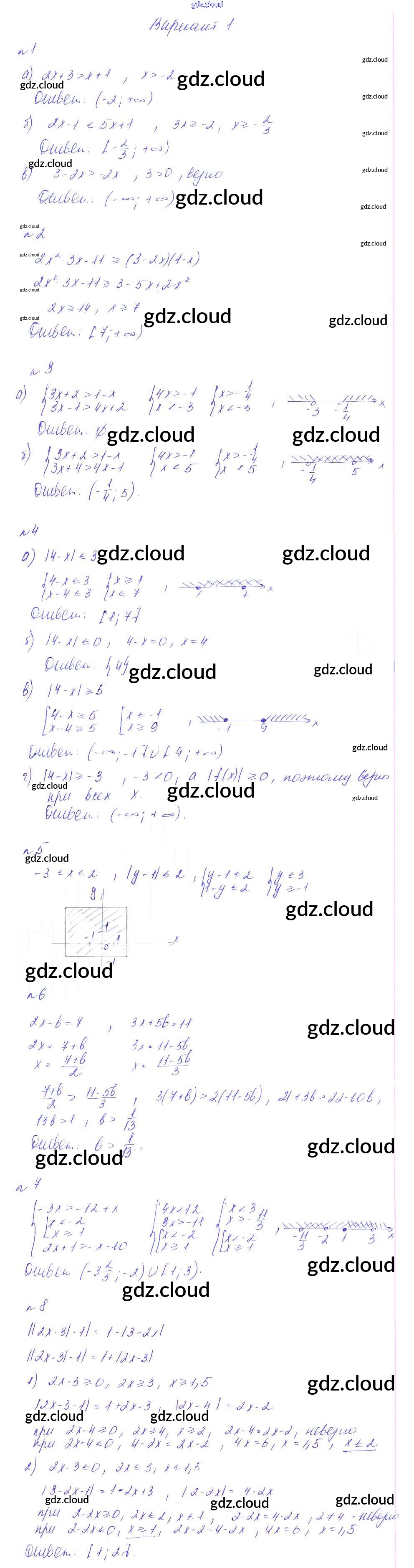 КР-5. Неравенства Ответы к Контрольным работам по Алгебре 8 класс Дидактические материалы Феоктистов Мнемозина
