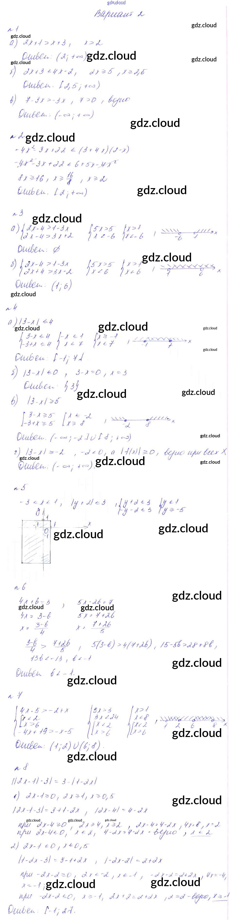 КР-5. Неравенства Ответы к Контрольным работам по Алгебре 8 класс Дидактические материалы Феоктистов Мнемозина