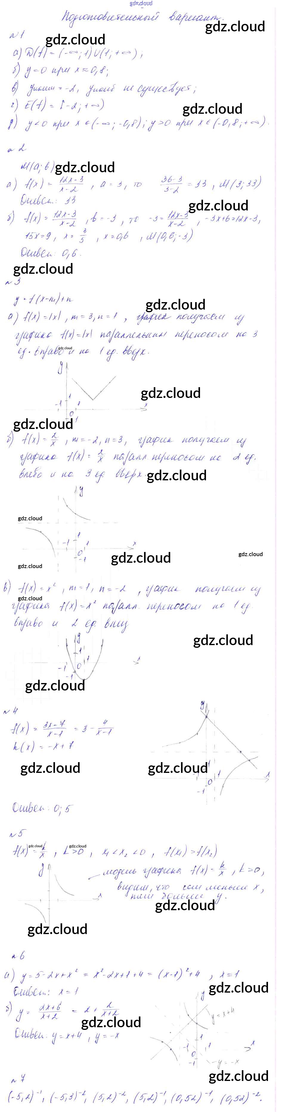 КР-7. Функции и графики Ответы к Контрольным работам по Алгебре 8 класс Дидактические материалы Феоктистов Мнемозина
