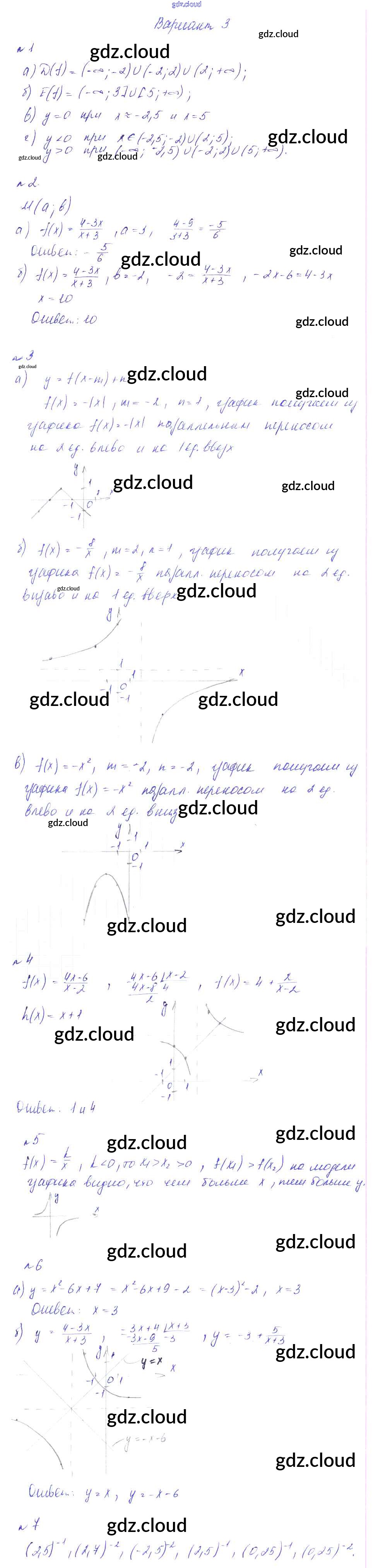 КР-7. Функции и графики Ответы к Контрольным работам по Алгебре 8 класс Дидактические материалы Феоктистов Мнемозина