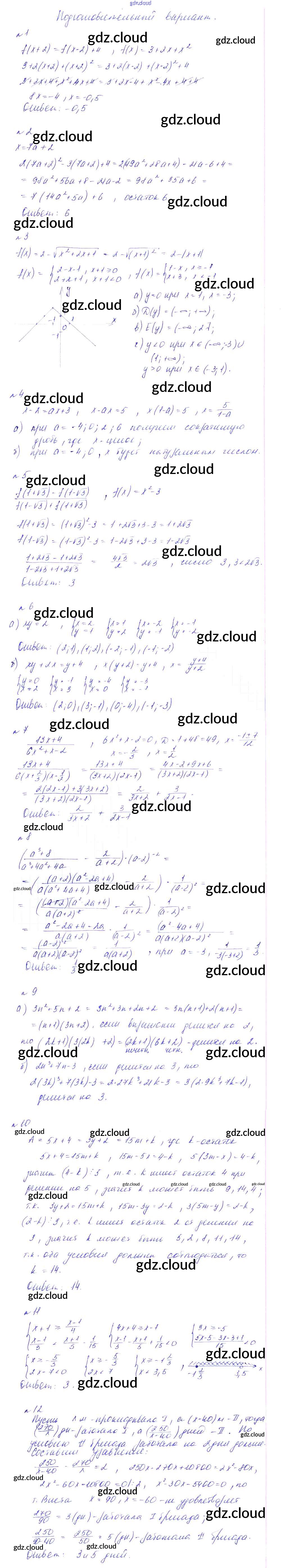 Итоговая КР Ответы к Контрольным работам по Алгебре 8 класс Дидактические материалы Феоктистов Мнемозина