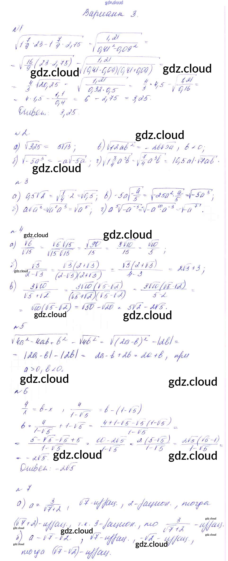 Ответ на задание вариант 3 Дидактические материалы Алгебра за 8 (восьмой) класс Феоктистов 2013
