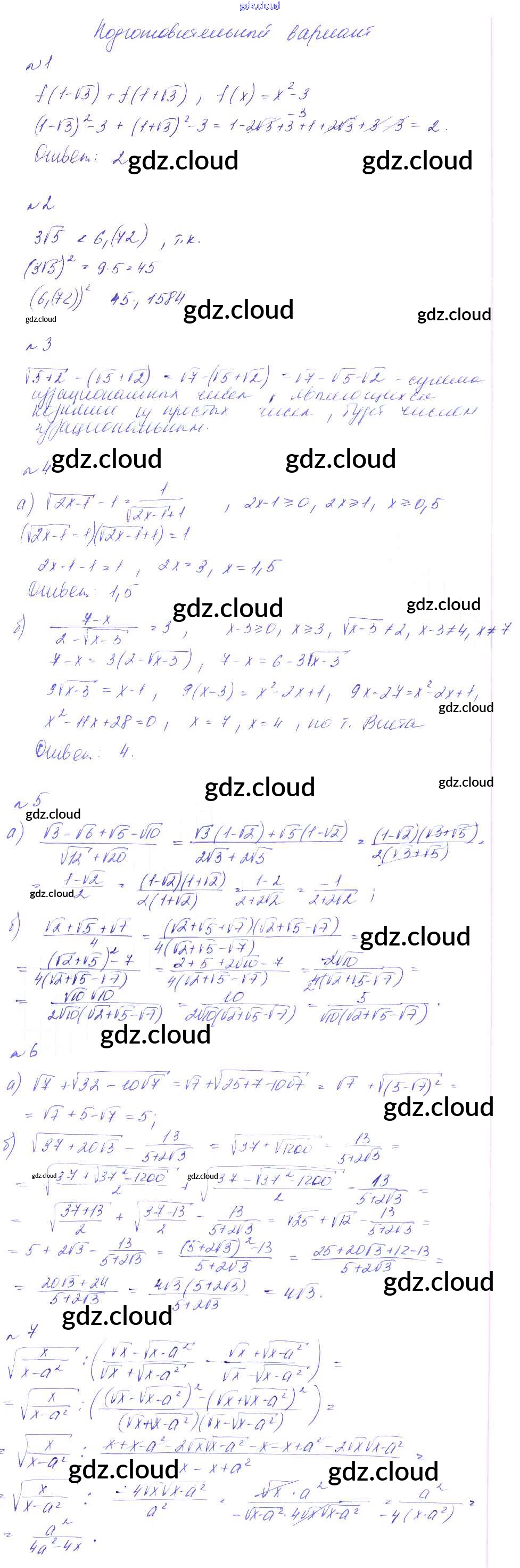 СР-12. Преобразование сложных радикалов Ответы к Самостоятельным работам по Алгебре 8 класс Дидактические материалы Феоктистов Мнемозина