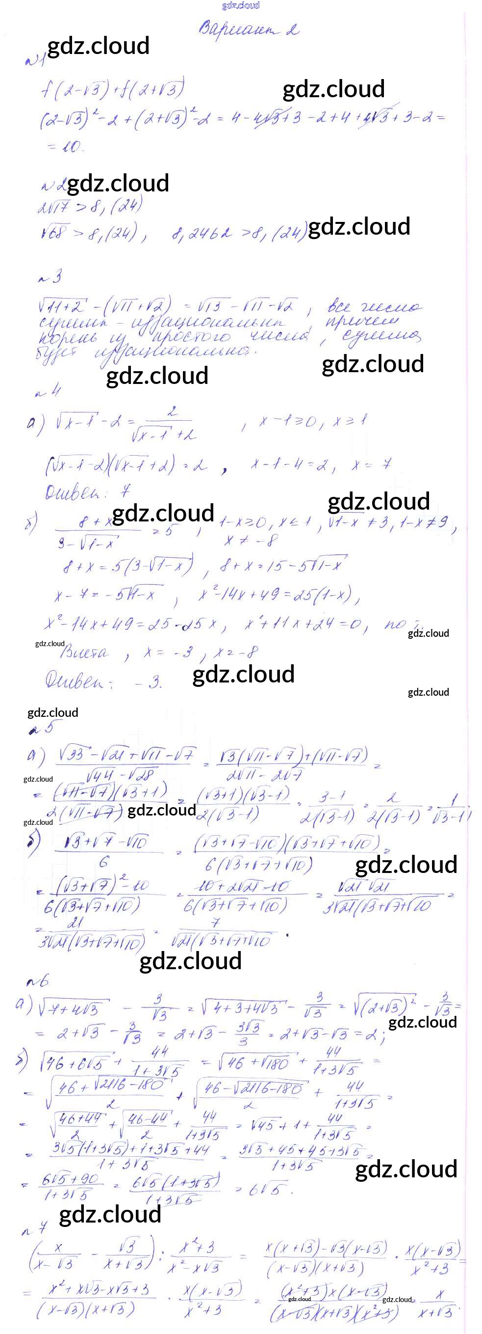 СР-12. Преобразование сложных радикалов Ответы к Самостоятельным работам по Алгебре 8 класс Дидактические материалы Феоктистов Мнемозина