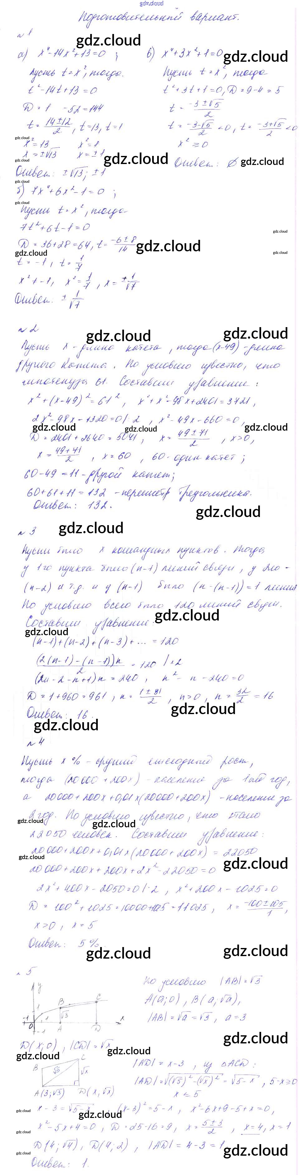 СР-14. Биквадратные уравнения. Решение задач с помощью квадратных уравнений Ответы к Самостоятельным работам по Алгебре 8 класс Дидактические материалы Феоктистов Мнемозина