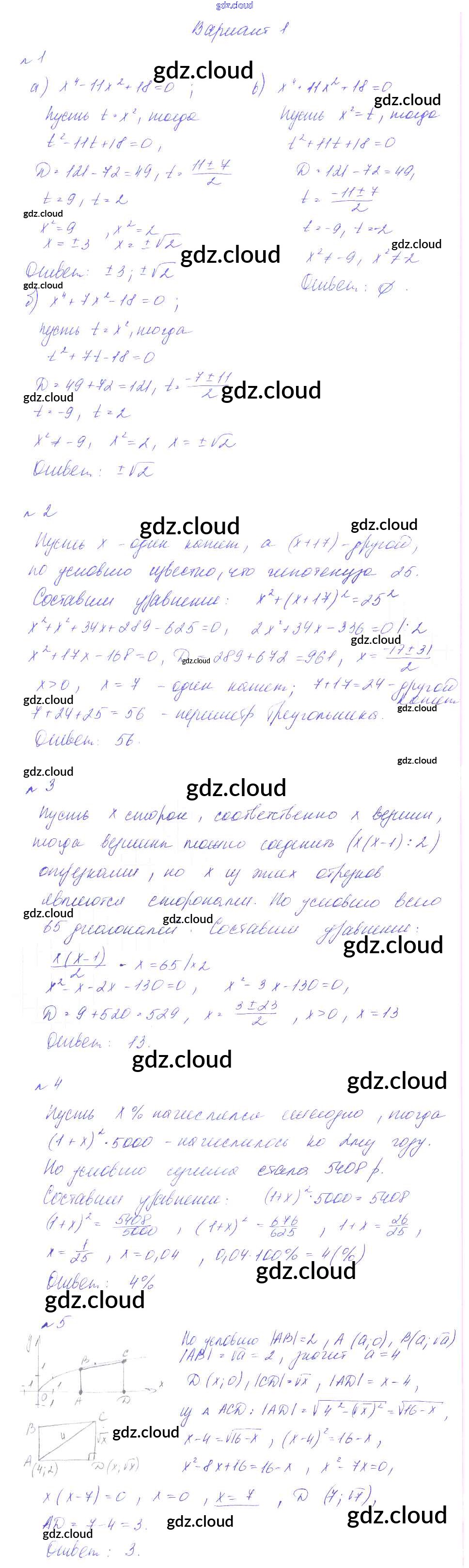 СР-14. Биквадратные уравнения. Решение задач с помощью квадратных уравнений Ответы к Самостоятельным работам по Алгебре 8 класс Дидактические материалы Феоктистов Мнемозина
