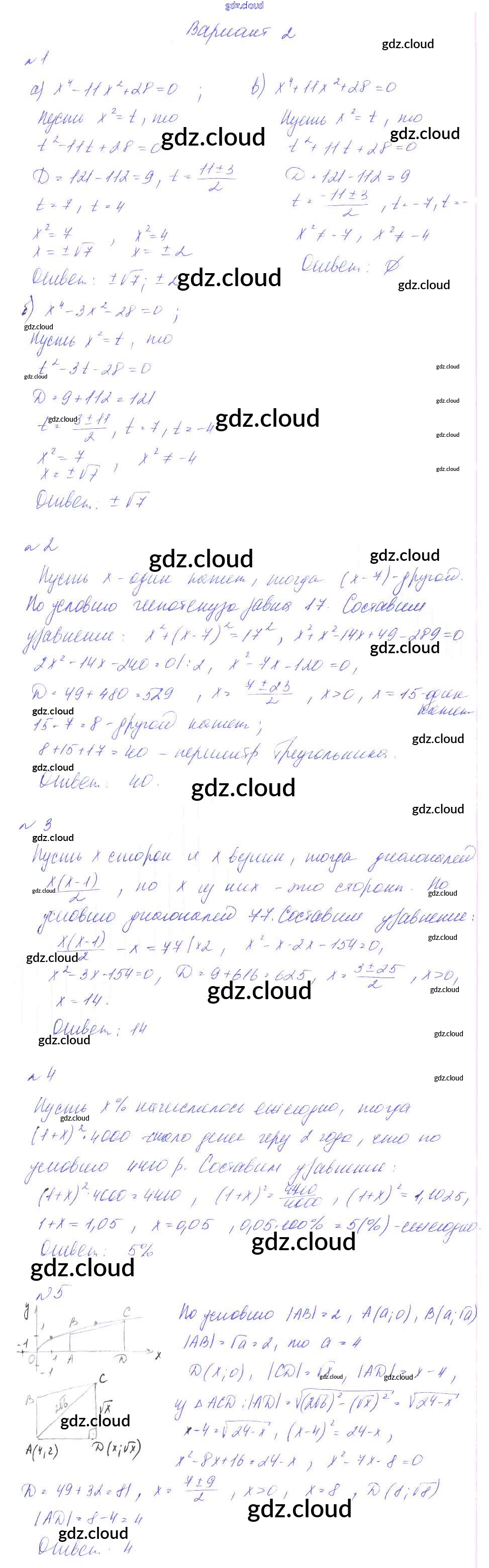 СР-14. Биквадратные уравнения. Решение задач с помощью квадратных уравнений Ответы к Самостоятельным работам по Алгебре 8 класс Дидактические материалы Феоктистов Мнемозина