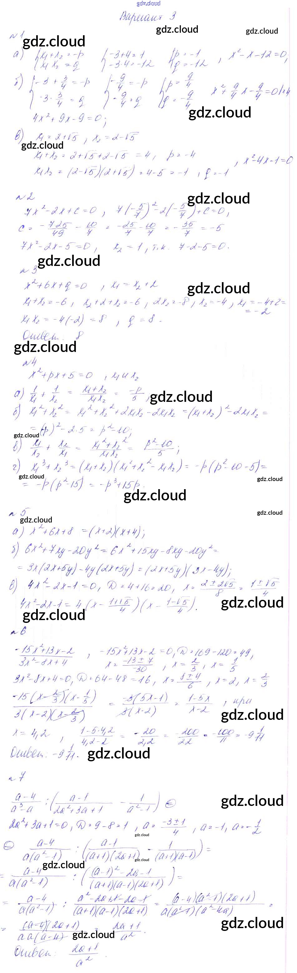 СР-15. Свойство корней квадратного уравнения, симметрические многочлены, разложение квадратного трехчлена на множ Ответы к Самостоятельным работам по Алгебре 8 класс Дидактические материалы Феоктистов Мнемозина