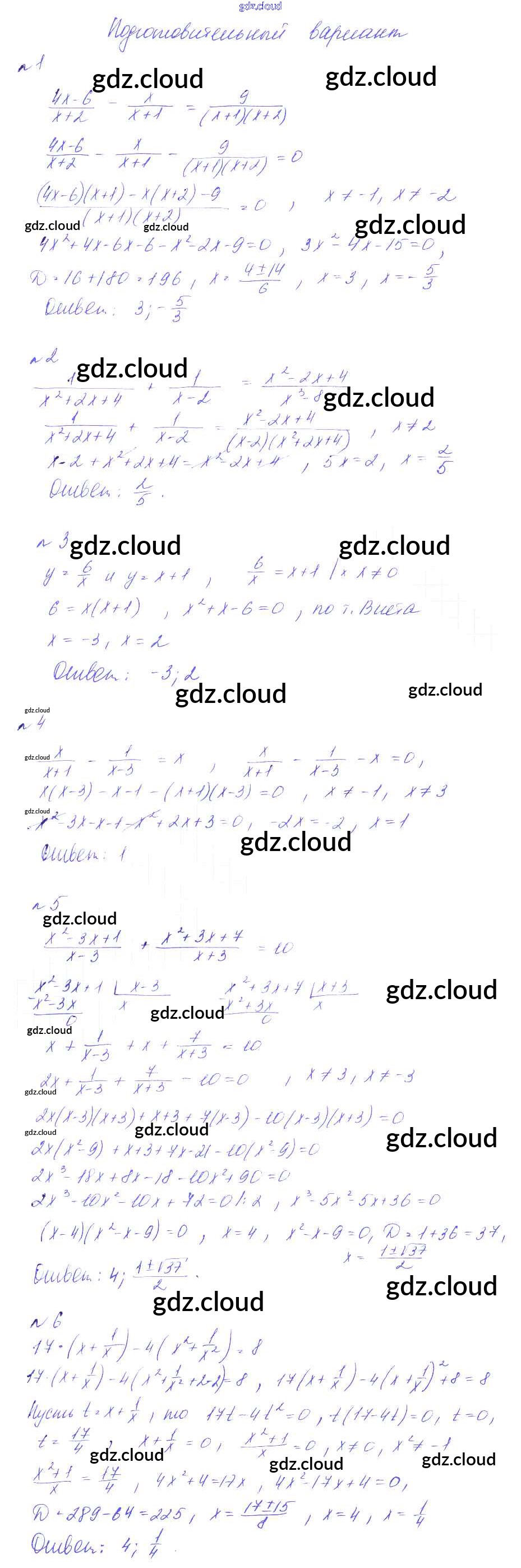 СР-16. Решение дробно-рациональных уравнений Ответы к Самостоятельным работам по Алгебре 8 класс Дидактические материалы Феоктистов Мнемозина