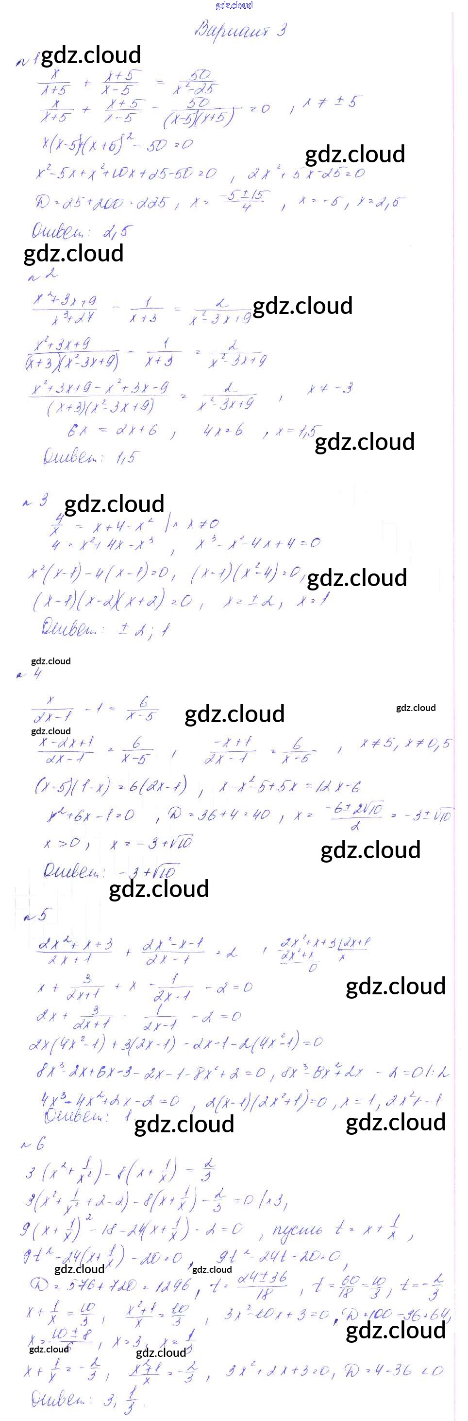 СР-16. Решение дробно-рациональных уравнений Ответы к Самостоятельным работам по Алгебре 8 класс Дидактические материалы Феоктистов Мнемозина