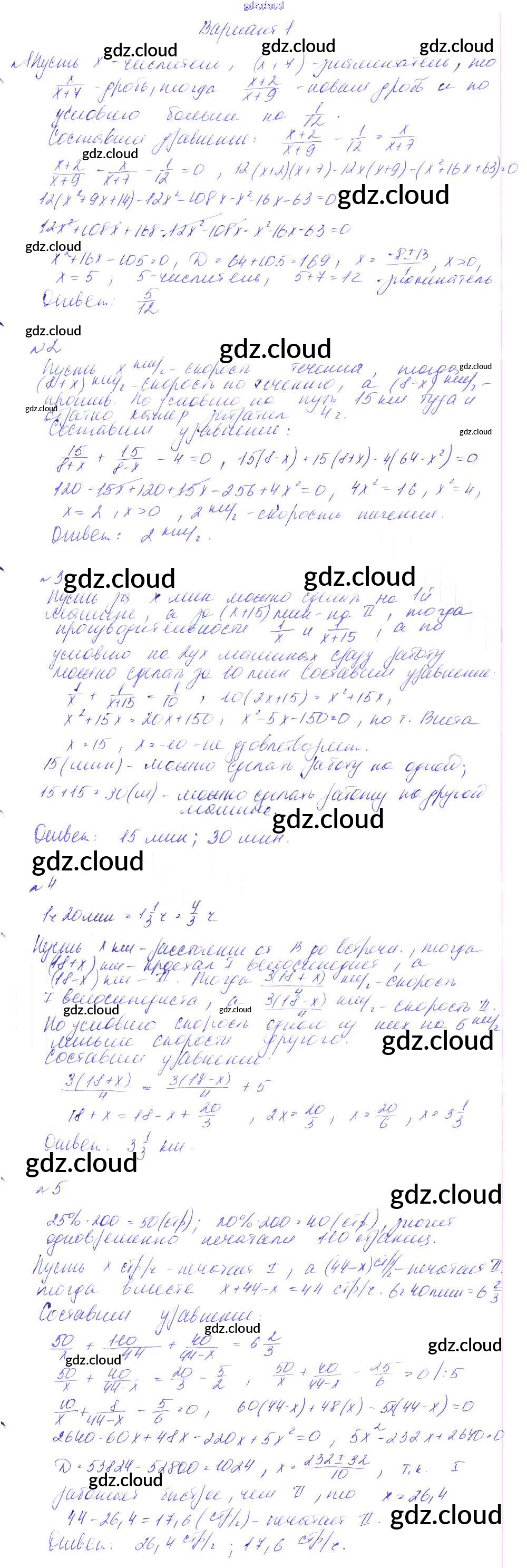 СР-17. Решение задач с помощью дробно-рациональных уравнений Ответы к Самостоятельным работам по Алгебре 8 класс Дидактические материалы Феоктистов Мнемозина