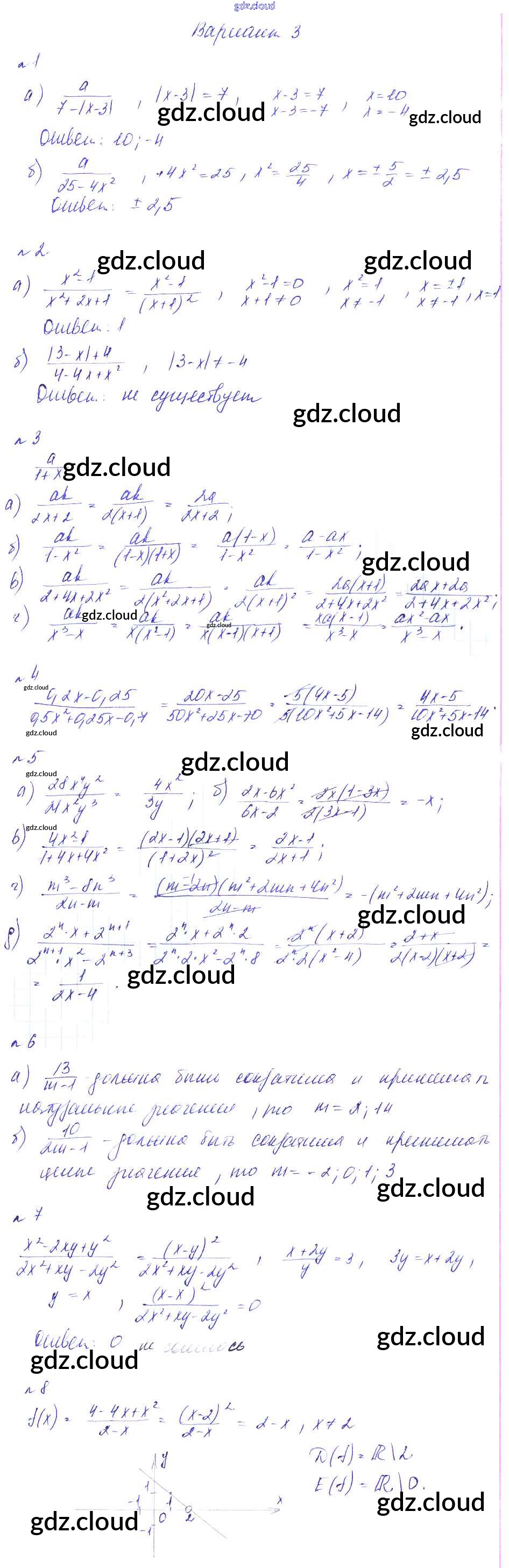 СР-2. Дроби и их свойства Ответы к Самостоятельным работам по Алгебре 8 класс Дидактические материалы Феоктистов Мнемозина