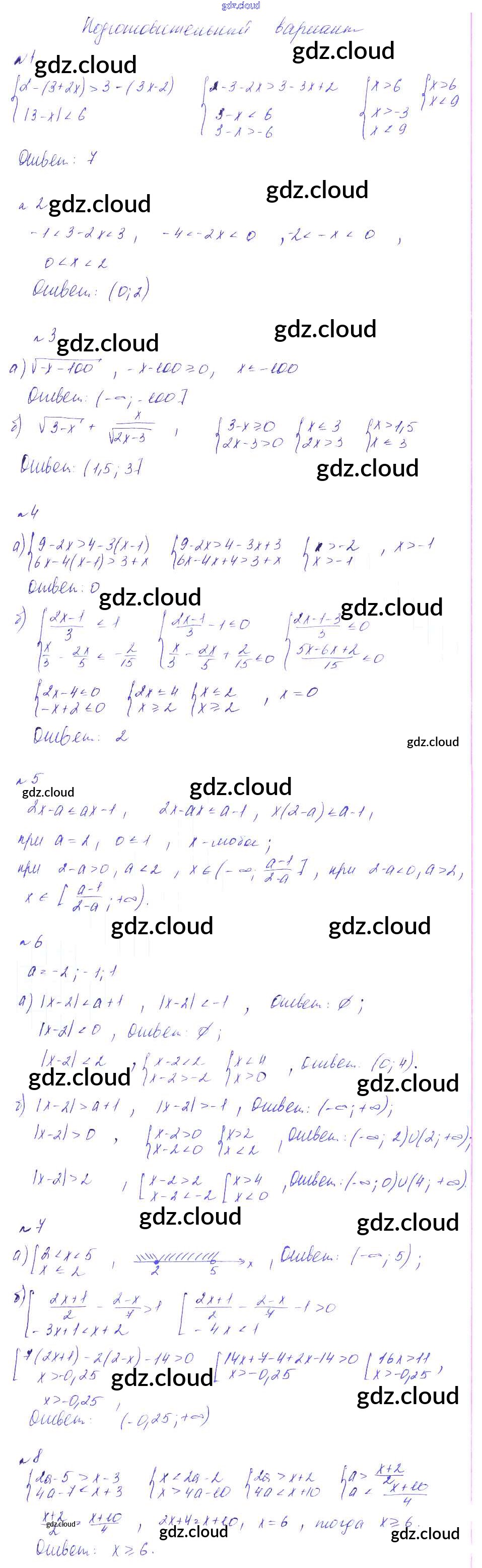 СР-20. Неравенства, содержащие модуль, системы и совокупности неравенств Ответы к Самостоятельным работам по Алгебре 8 класс Дидактические материалы Феоктистов Мнемозина