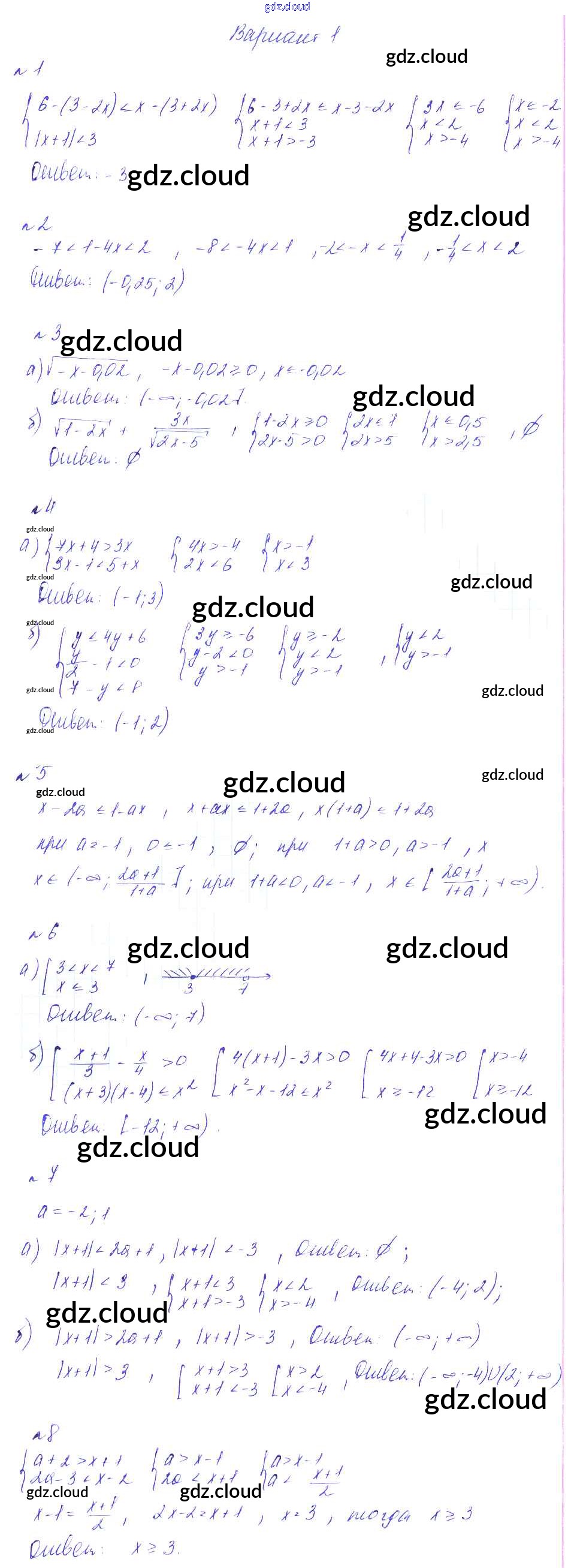 СР-20. Неравенства, содержащие модуль, системы и совокупности неравенств Ответы к Самостоятельным работам по Алгебре 8 класс Дидактические материалы Феоктистов Мнемозина