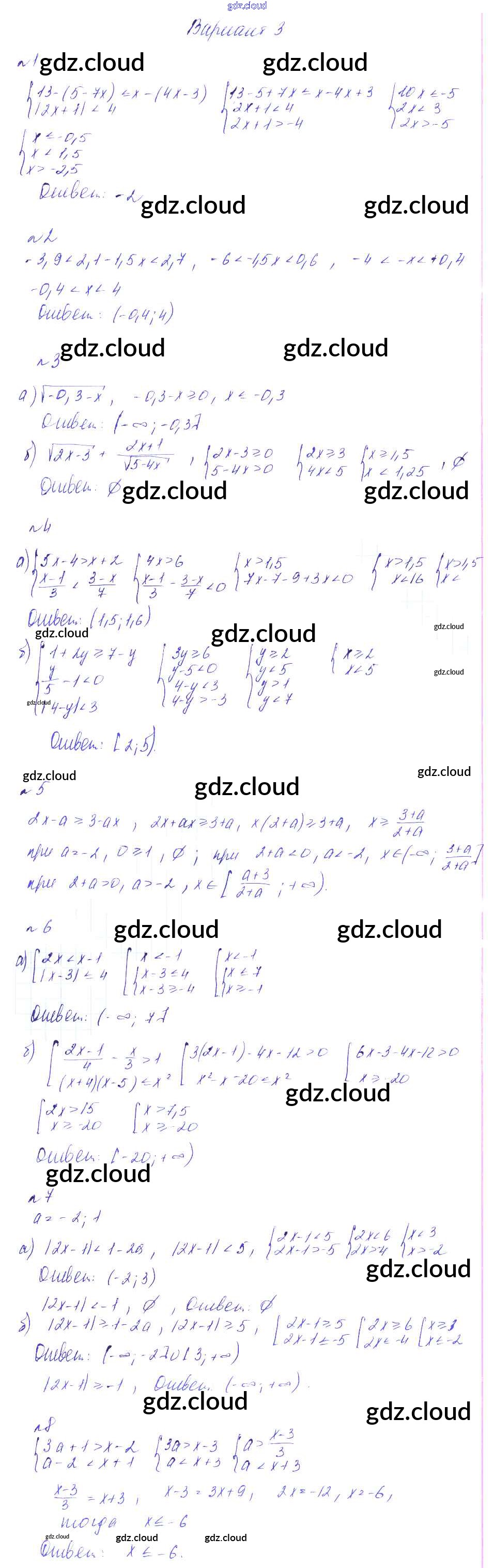 СР-20. Неравенства, содержащие модуль, системы и совокупности неравенств Ответы к Самостоятельным работам по Алгебре 8 класс Дидактические материалы Феоктистов Мнемозина