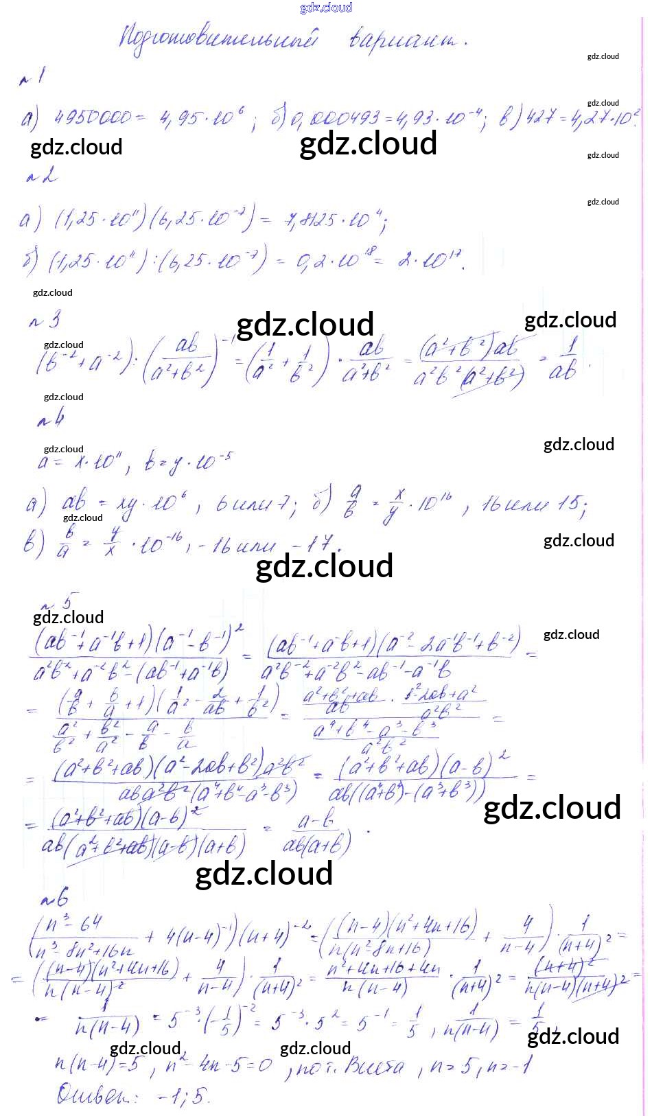 СР-22. Преобразование выражений, содержащих степени с целыми показателями. Стандартный вид числа Ответы к Самостоятельным работам по Алгебре 8 класс Дидактические материалы Феоктистов Мнемозина