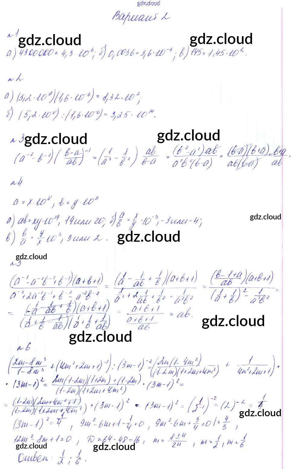 СР-22. Преобразование выражений, содержащих степени с целыми показателями. Стандартный вид числа Ответы к Самостоятельным работам по Алгебре 8 класс Дидактические материалы Феоктистов Мнемозина