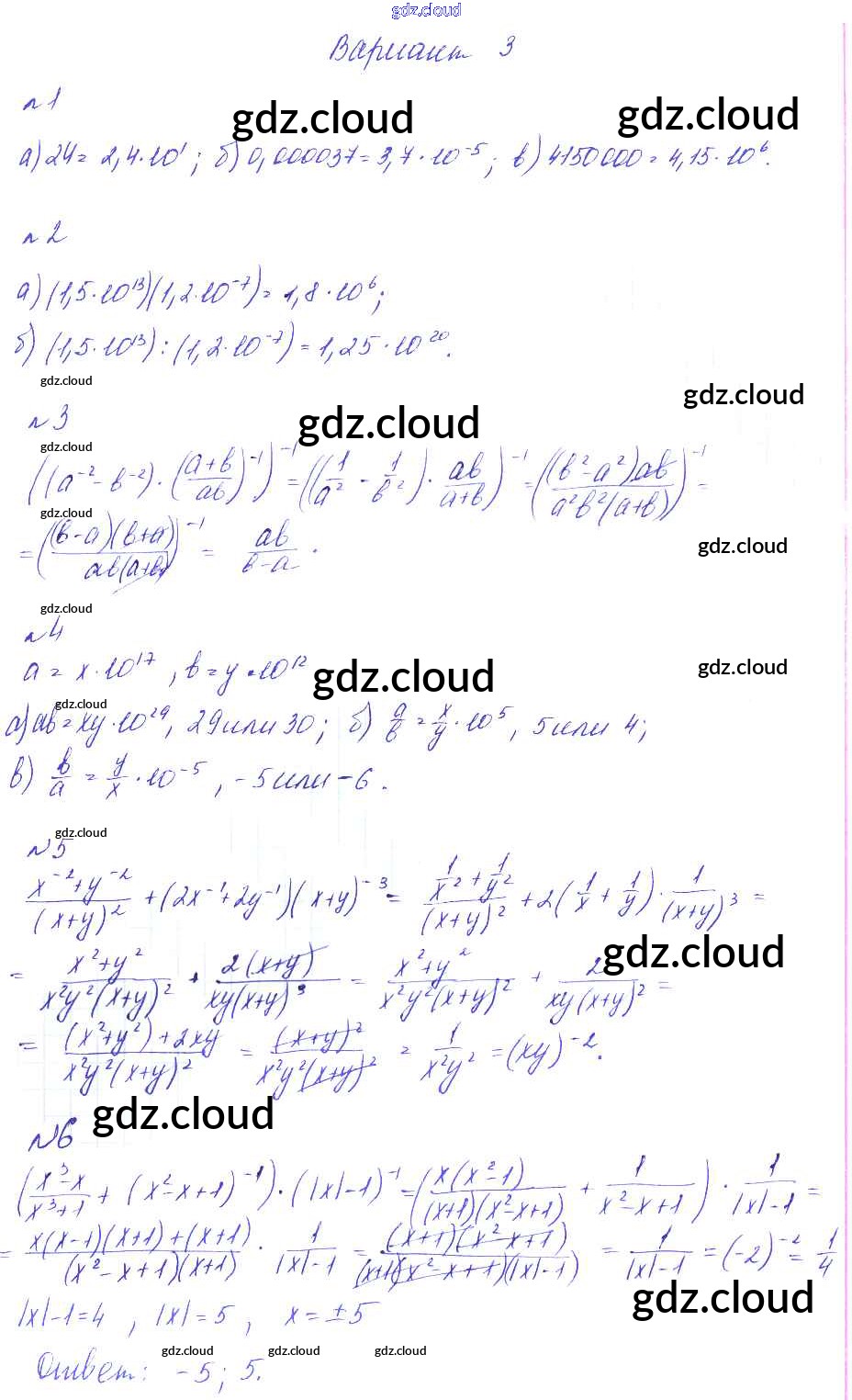 СР-22. Преобразование выражений, содержащих степени с целыми показателями. Стандартный вид числа Ответы к Самостоятельным работам по Алгебре 8 класс Дидактические материалы Феоктистов Мнемозина