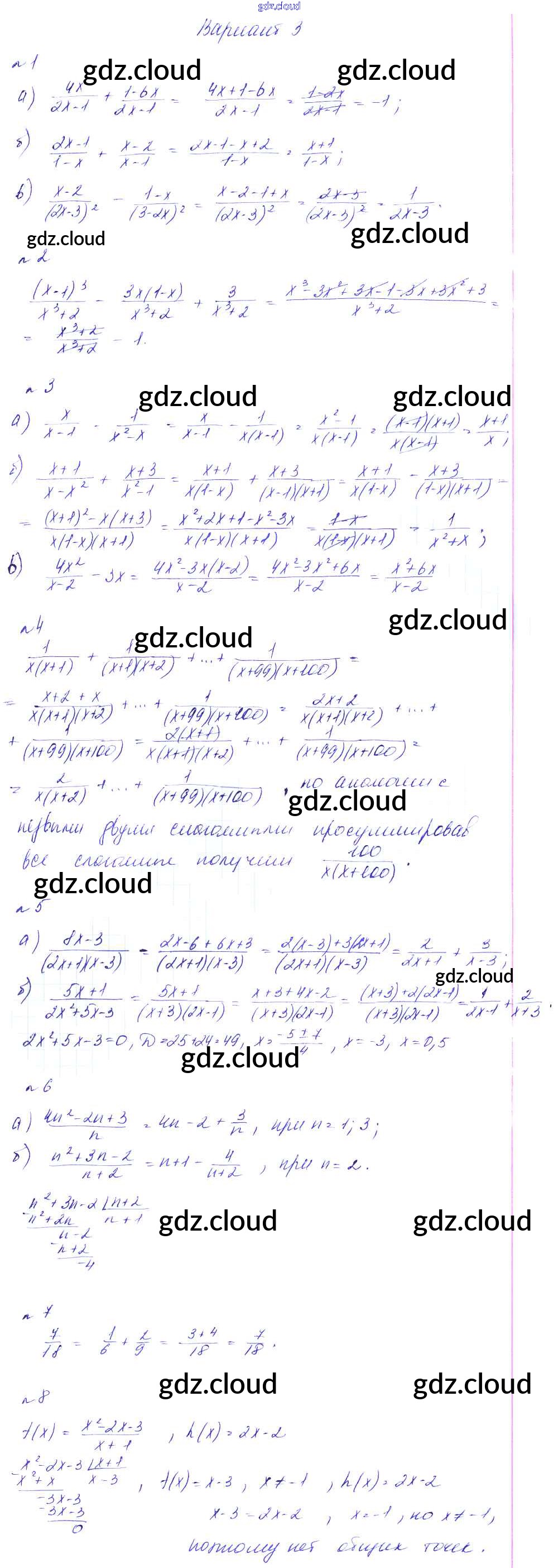 СР-3. Сложение и вычитание дробей Ответы к Самостоятельным работам по Алгебре 8 класс Дидактические материалы Феоктистов Мнемозина
