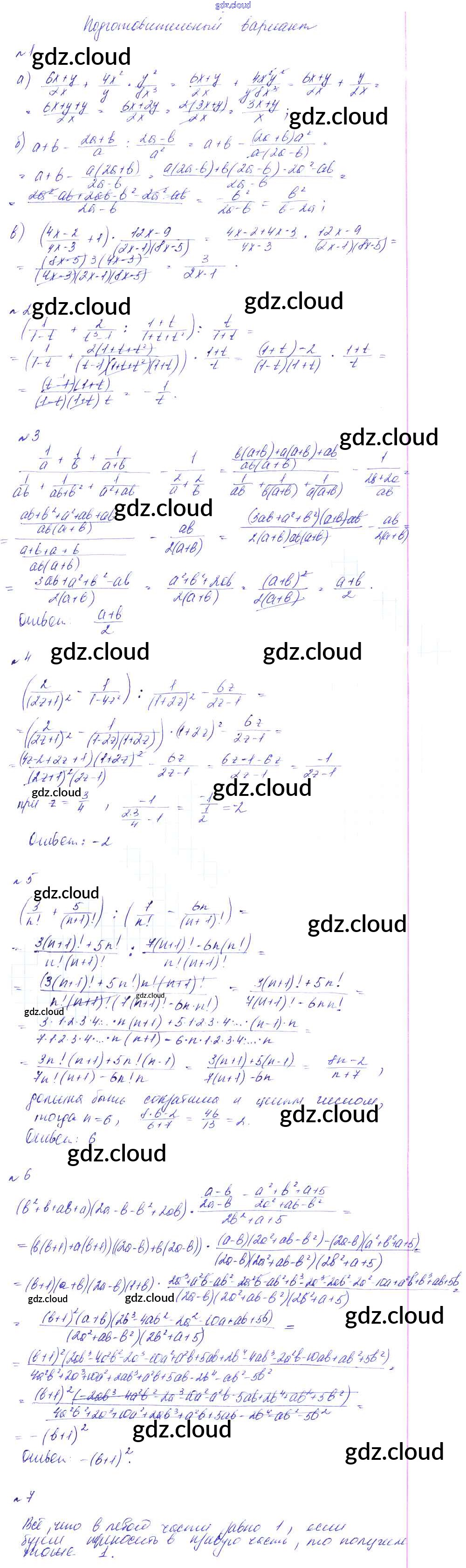 СР-5. Преобразование рациональных выражений Ответы к Самостоятельным работам по Алгебре 8 класс Дидактические материалы Феоктистов Мнемозина
