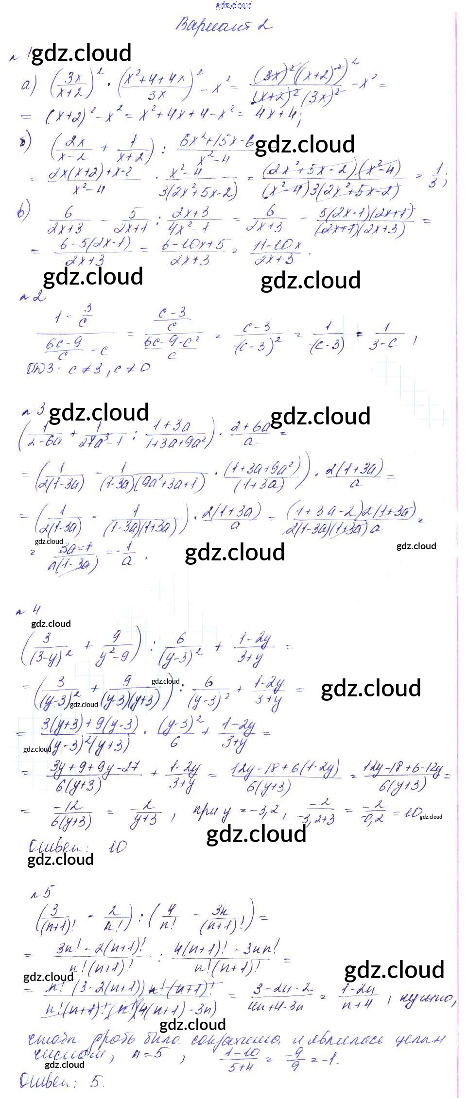 СР-5. Преобразование рациональных выражений Ответы к Самостоятельным работам по Алгебре 8 класс Дидактические материалы Феоктистов Мнемозина