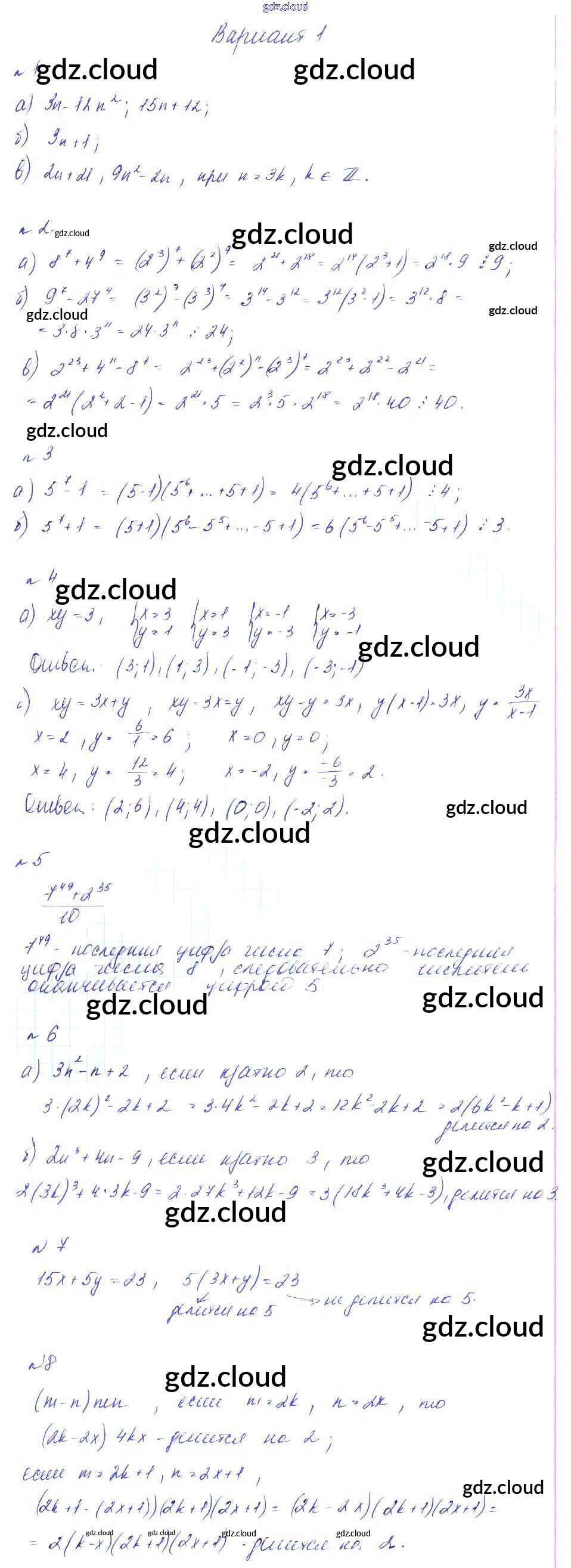 СР-7. Свойства делимости, делимость суммы и произведения Ответы к Самостоятельным работам по Алгебре 8 класс Дидактические материалы Феоктистов Мнемозина