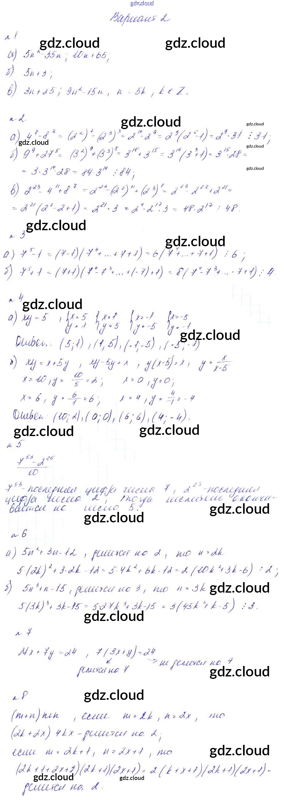 СР-7. Свойства делимости, делимость суммы и произведения Ответы к Самостоятельным работам по Алгебре 8 класс Дидактические материалы Феоктистов Мнемозина