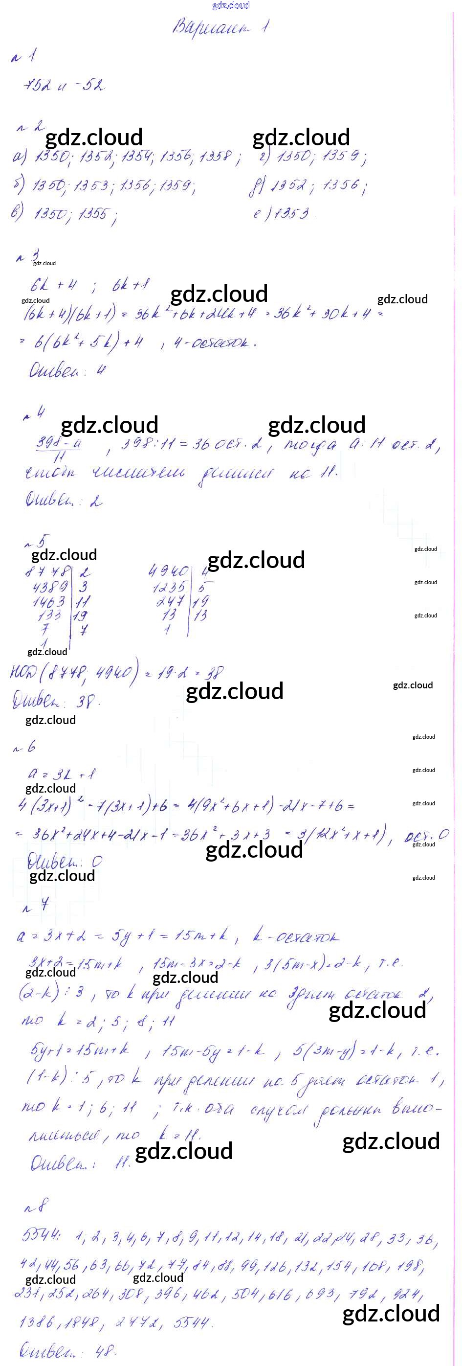 СР-8. Деление с остатком, признаки делимости, простые и составные числа Ответы к Самостоятельным работам по Алгебре 8 класс Дидактические материалы Феоктистов Мнемозина