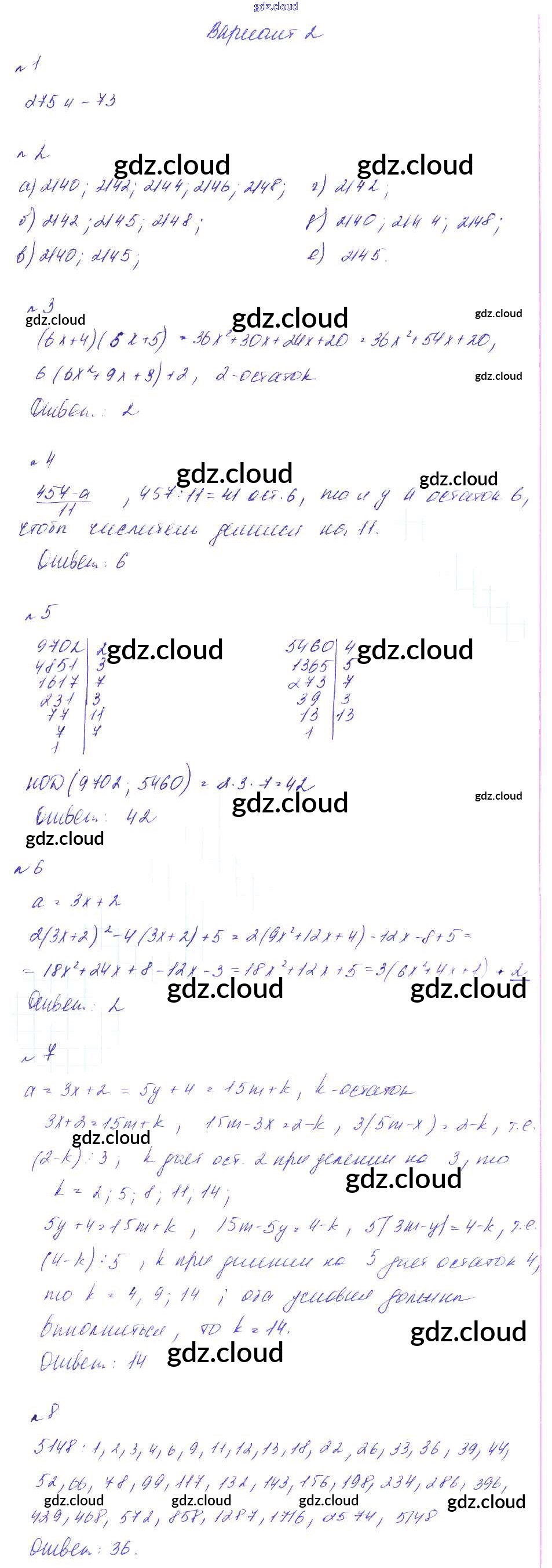СР-8. Деление с остатком, признаки делимости, простые и составные числа Ответы к Самостоятельным работам по Алгебре 8 класс Дидактические материалы Феоктистов Мнемозина
