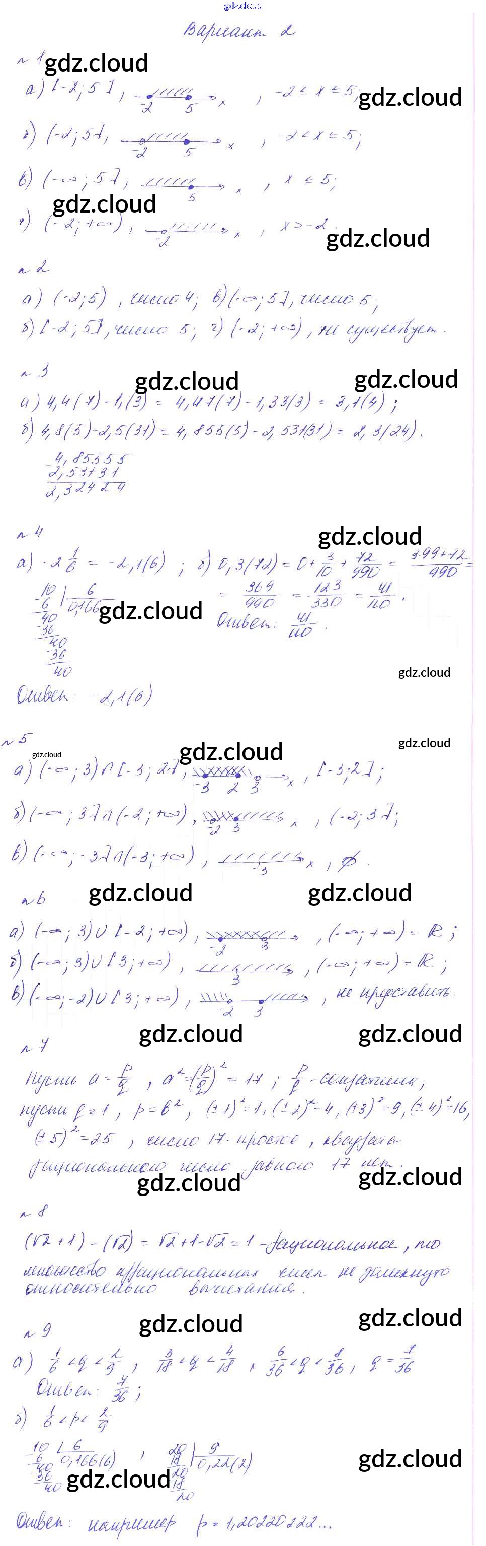СР-9. Рациональные числа, действительные числа, числовые промежутки Ответы к Самостоятельным работам по Алгебре 8 класс Дидактические материалы Феоктистов Мнемозина