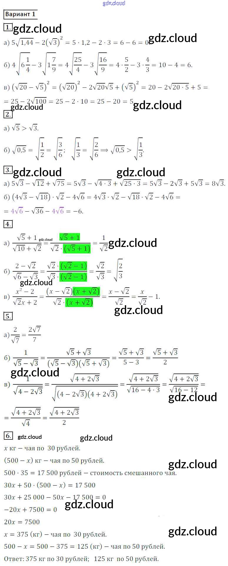 Ответ на задание вариант 1 Дидактические материалы Алгебра за 8 (восьмой) класс Потапов, Шевкин МГУ - школе 2017