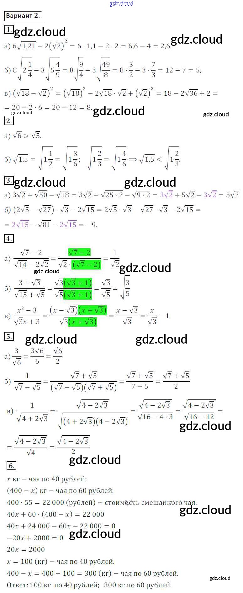 КР №2 Ответы к Контрольным работам по Алгебре 8 класс Дидактические материалы Потапов МГУ - школе Просвещение