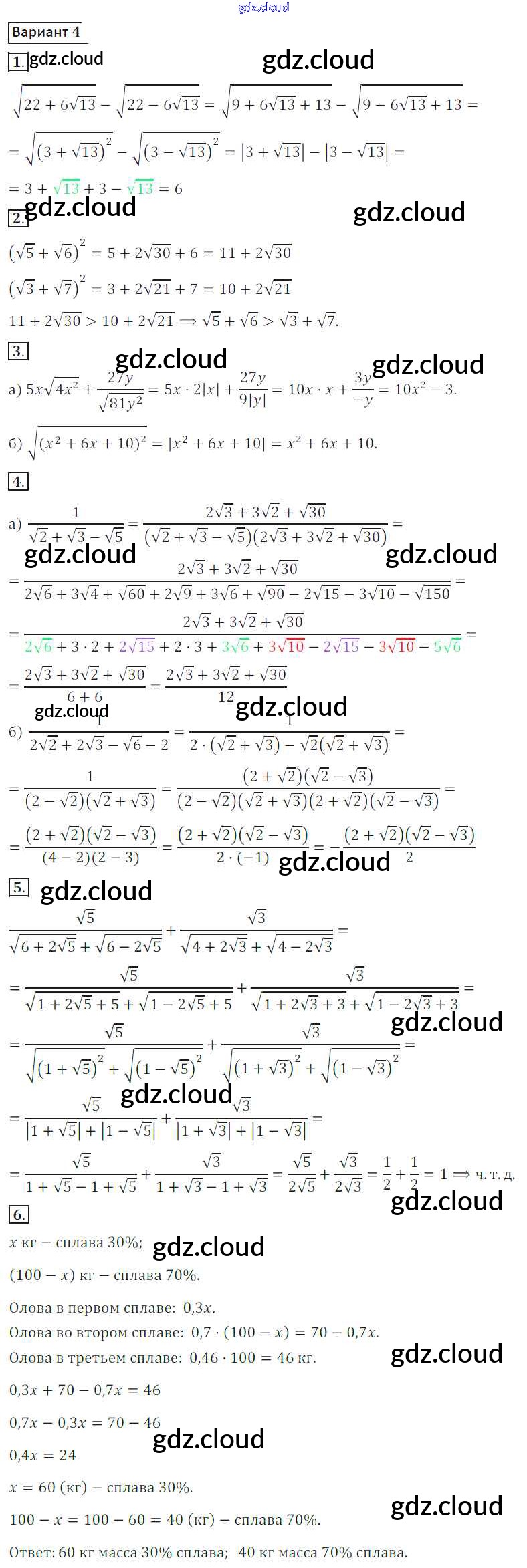 Ответ на задание вариант 4 Дидактические материалы Алгебра за 8 (восьмой) класс Потапов, Шевкин МГУ - школе 2017
