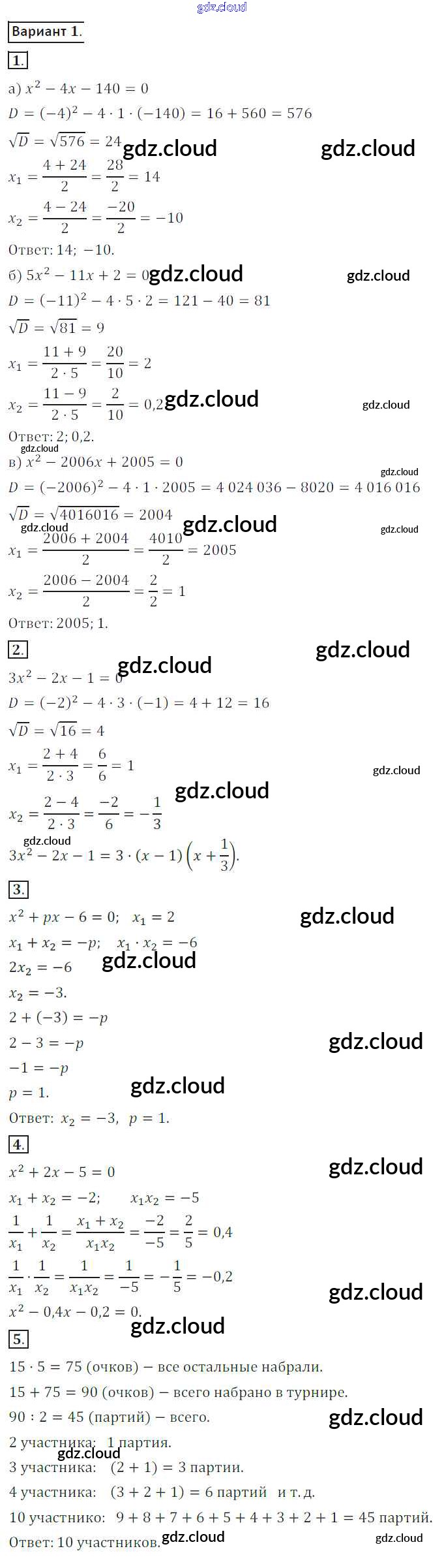 Ответ на задание вариант 1 Дидактические материалы Алгебра за 8 (восьмой) класс Потапов, Шевкин МГУ - школе 2017