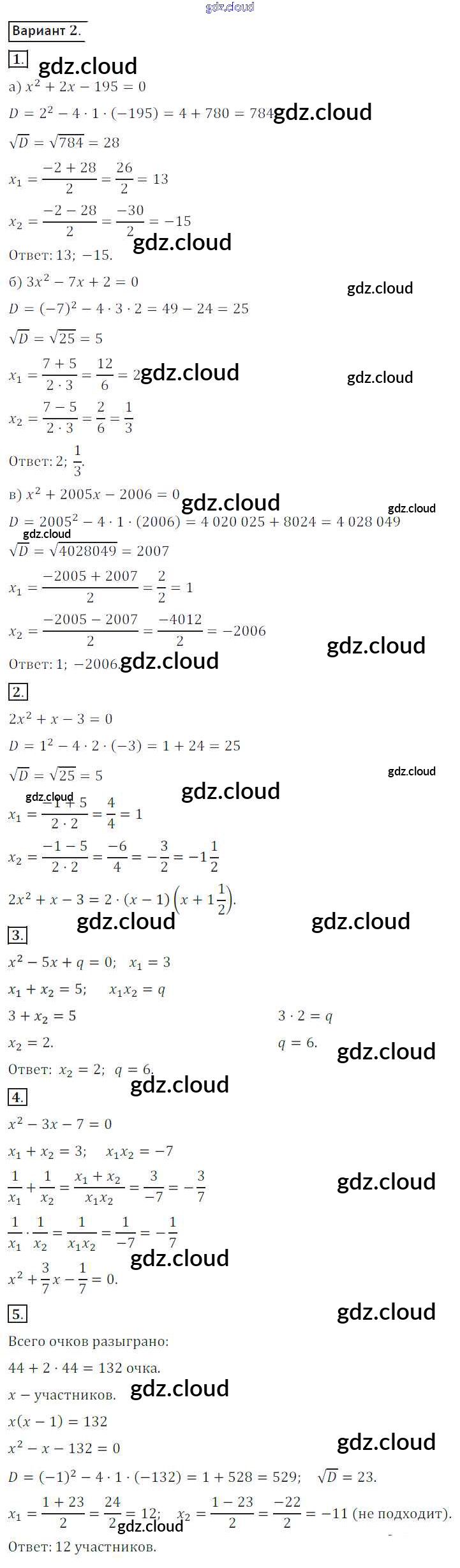 Ответ на задание вариант 2 Дидактические материалы Алгебра за 8 (восьмой) класс Потапов, Шевкин МГУ - школе 2017