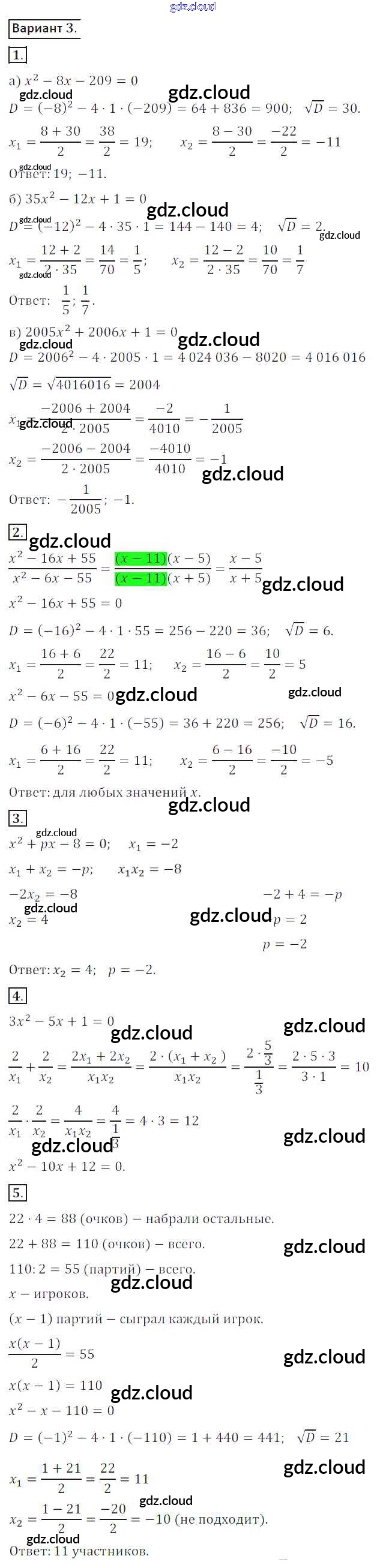КР №3 Ответы к Контрольным работам по Алгебре 8 класс Дидактические материалы Потапов МГУ - школе Просвещение