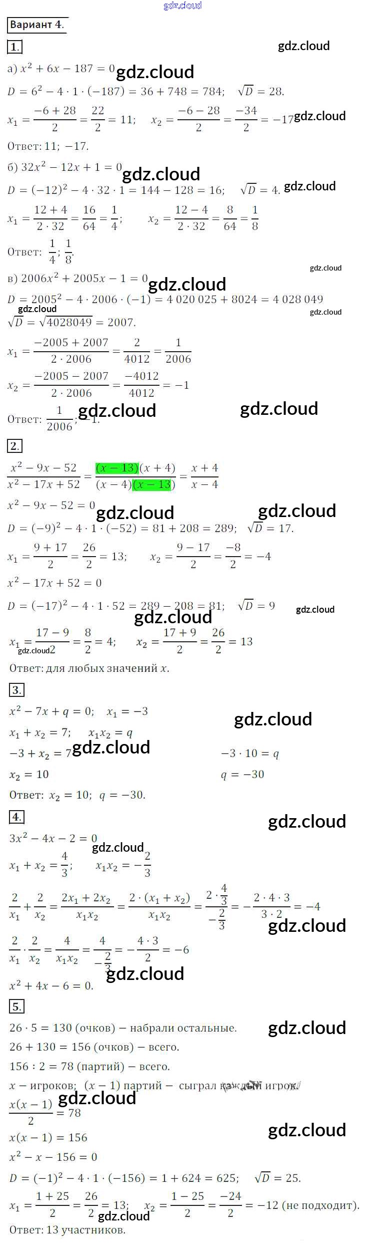 Ответ на задание вариант 4 Дидактические материалы Алгебра за 8 (восьмой) класс Потапов, Шевкин МГУ - школе 2017