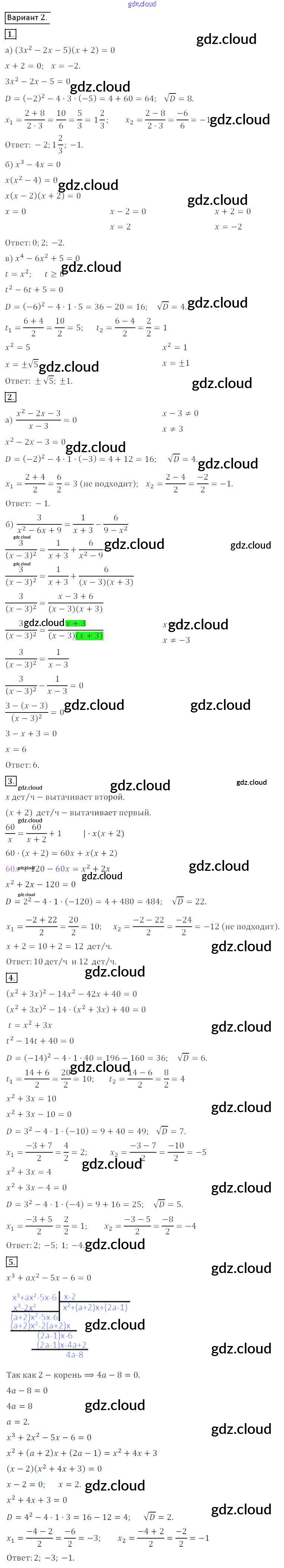 Ответ на задание вариант 2 Дидактические материалы Алгебра за 8 (восьмой) класс Потапов, Шевкин МГУ - школе 2017