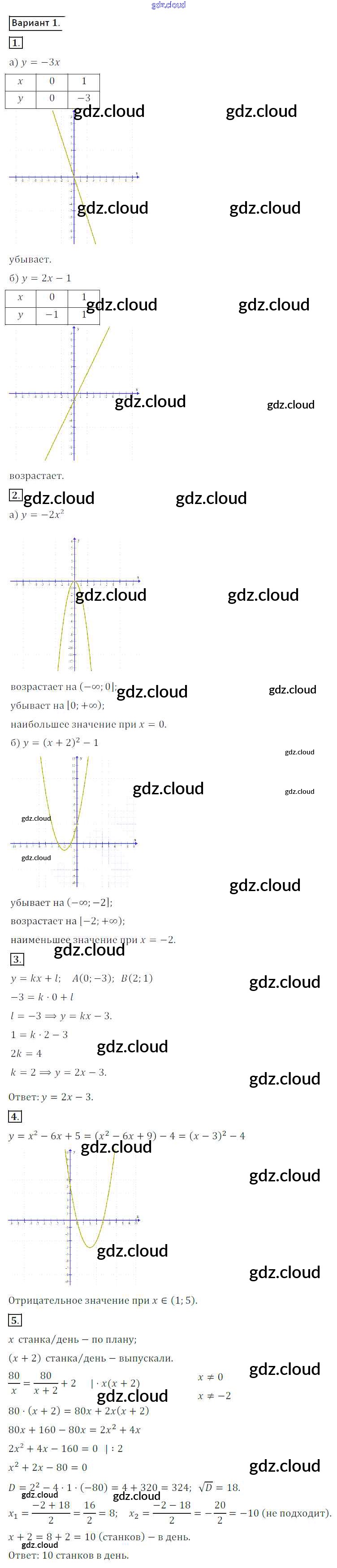 КР №5 Ответы к Контрольным работам по Алгебре 8 класс Дидактические материалы Потапов МГУ - школе Просвещение