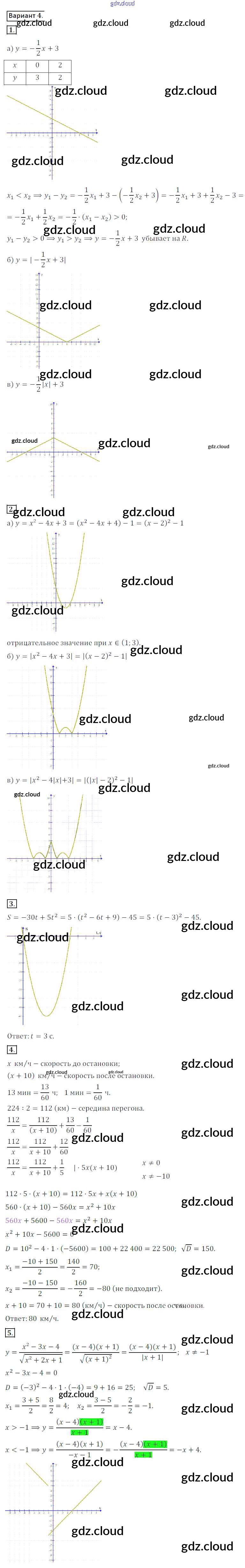 КР №5 Ответы к Контрольным работам по Алгебре 8 класс Дидактические материалы Потапов МГУ - школе Просвещение