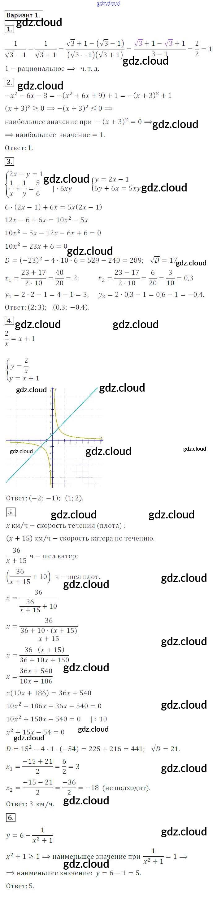 Ответ на задание вариант 1 Дидактические материалы Алгебра за 8 (восьмой) класс Потапов, Шевкин МГУ - школе 2017