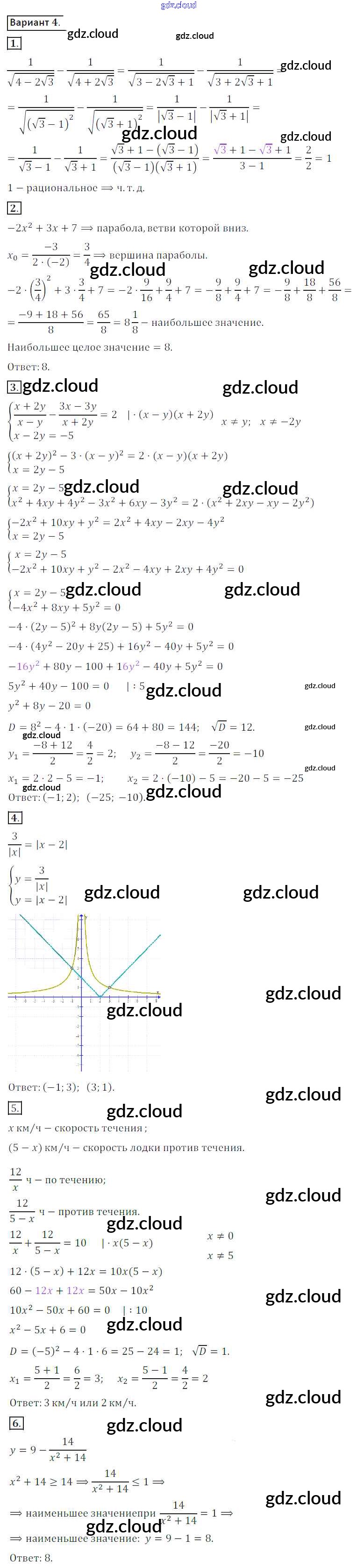 Ответ на задание вариант 4 Дидактические материалы Алгебра за 8 (восьмой) класс Потапов, Шевкин МГУ - школе 2017
