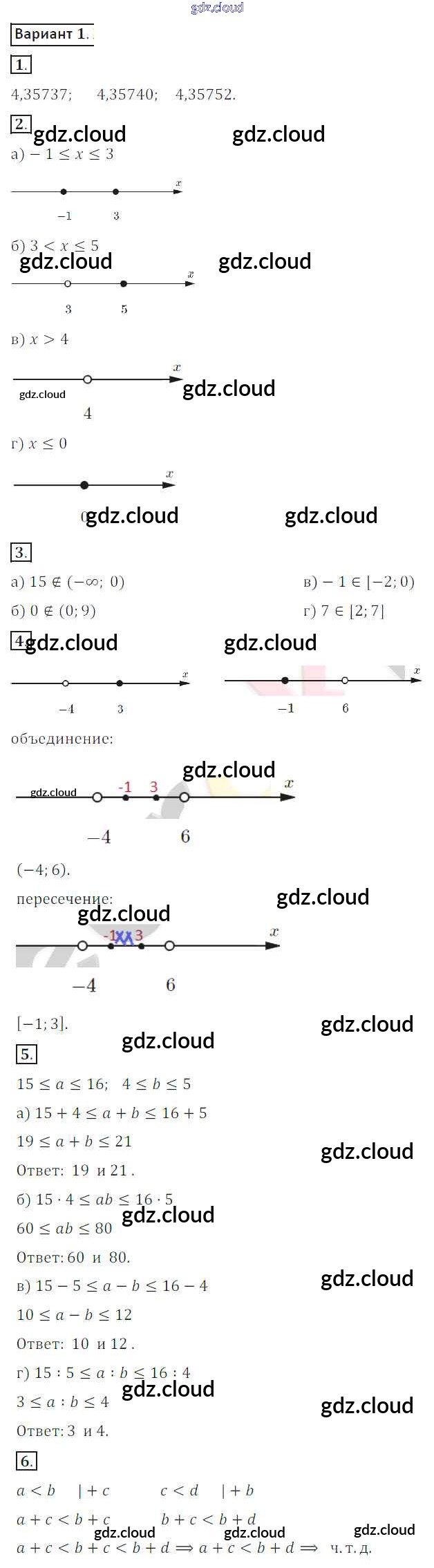 СР №1. Числовые неравенства. Числовые промежутки Ответы к Самостоятельным работам по Алгебре 8 класс Дидактические материалы Потапов МГУ - школе Просвещение