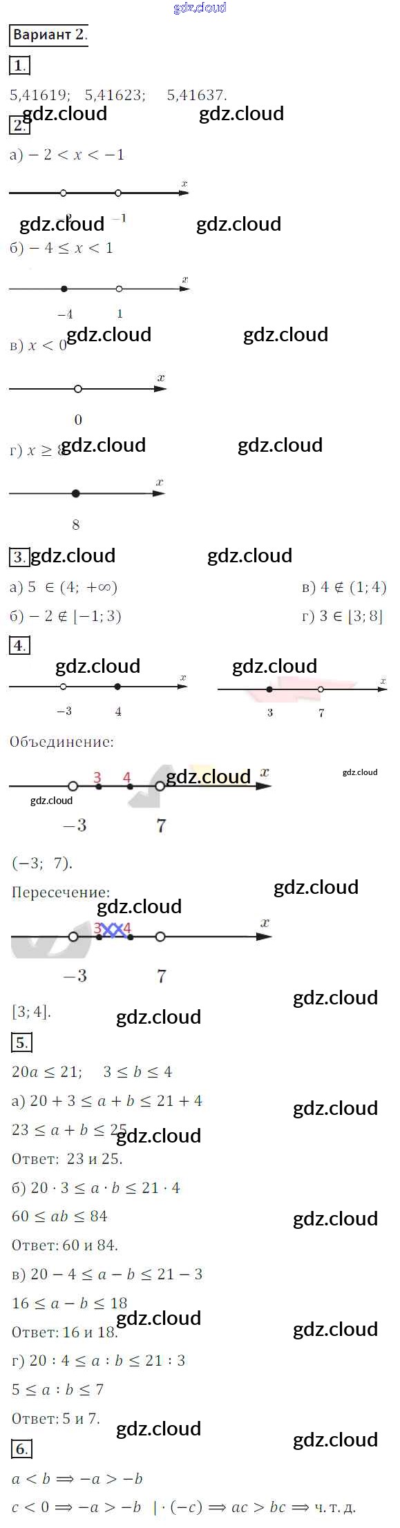 СР №1. Числовые неравенства. Числовые промежутки Ответы к Самостоятельным работам по Алгебре 8 класс Дидактические материалы Потапов МГУ - школе Просвещение