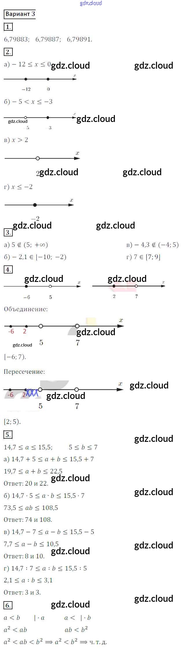 СР №1. Числовые неравенства. Числовые промежутки Ответы к Самостоятельным работам по Алгебре 8 класс Дидактические материалы Потапов МГУ - школе Просвещение