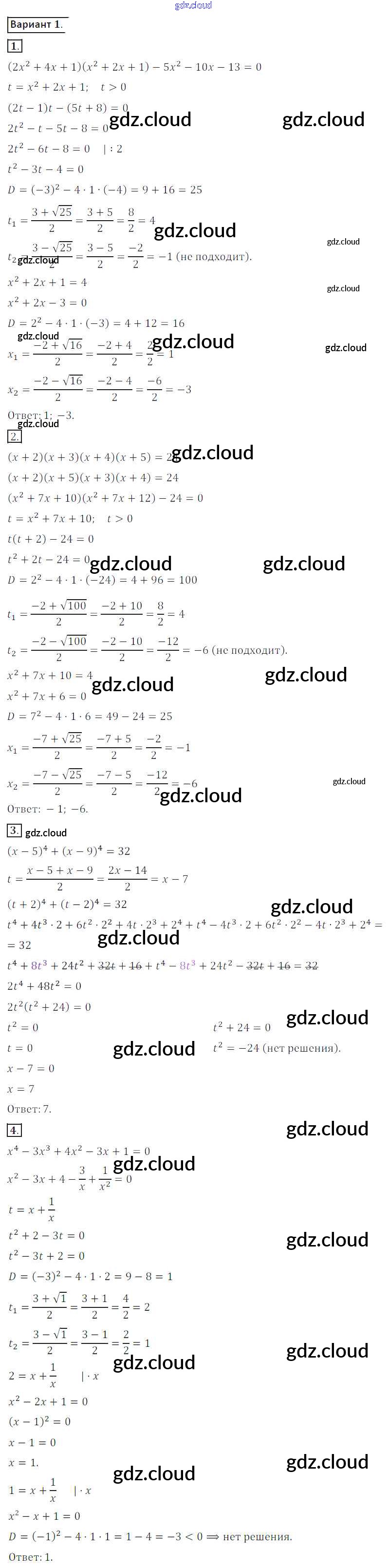 СР №10. Замена неизвестного при решении рациональных уравнений Ответы к Самостоятельным работам по Алгебре 8 класс Дидактические материалы Потапов МГУ - школе Просвещение