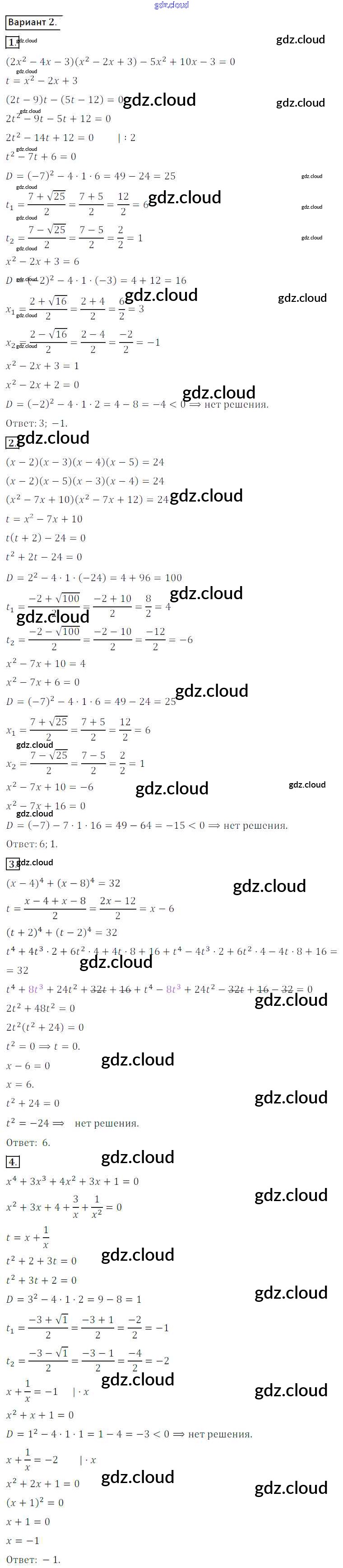 СР №10. Замена неизвестного при решении рациональных уравнений Ответы к Самостоятельным работам по Алгебре 8 класс Дидактические материалы Потапов МГУ - школе Просвещение