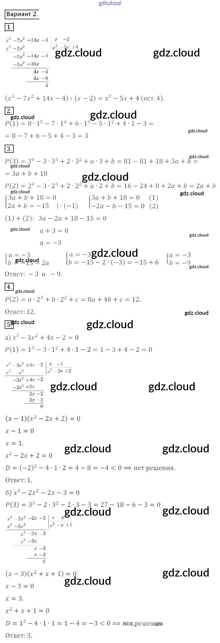 СР №11. Делимость многочленов Ответы к Самостоятельным работам по Алгебре 8 класс Дидактические материалы Потапов МГУ - школе Просвещение
