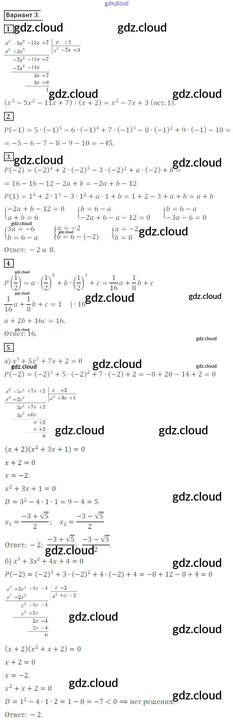 СР №11. Делимость многочленов Ответы к Самостоятельным работам по Алгебре 8 класс Дидактические материалы Потапов МГУ - школе Просвещение